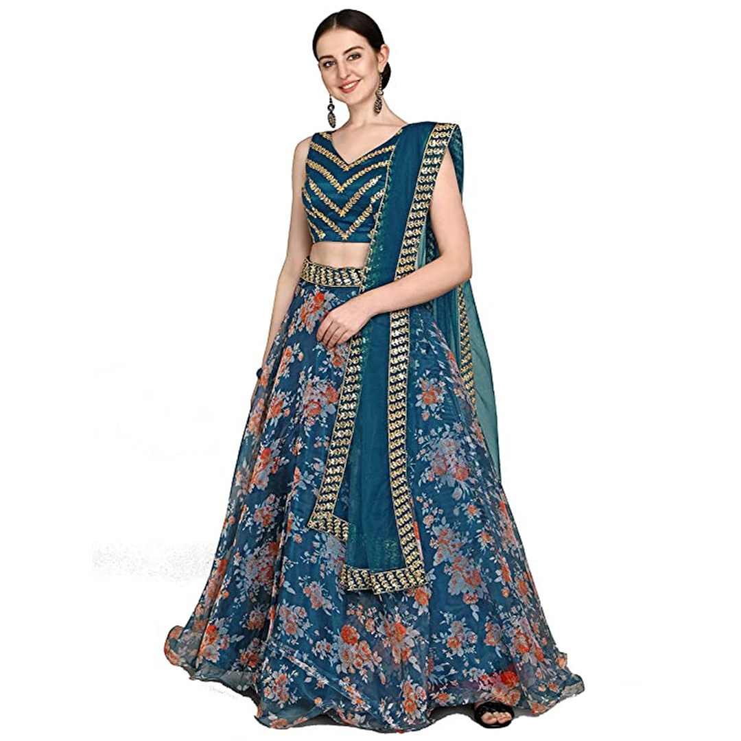 Sea Fashion Basket and Green Printed Lehenga Choli
